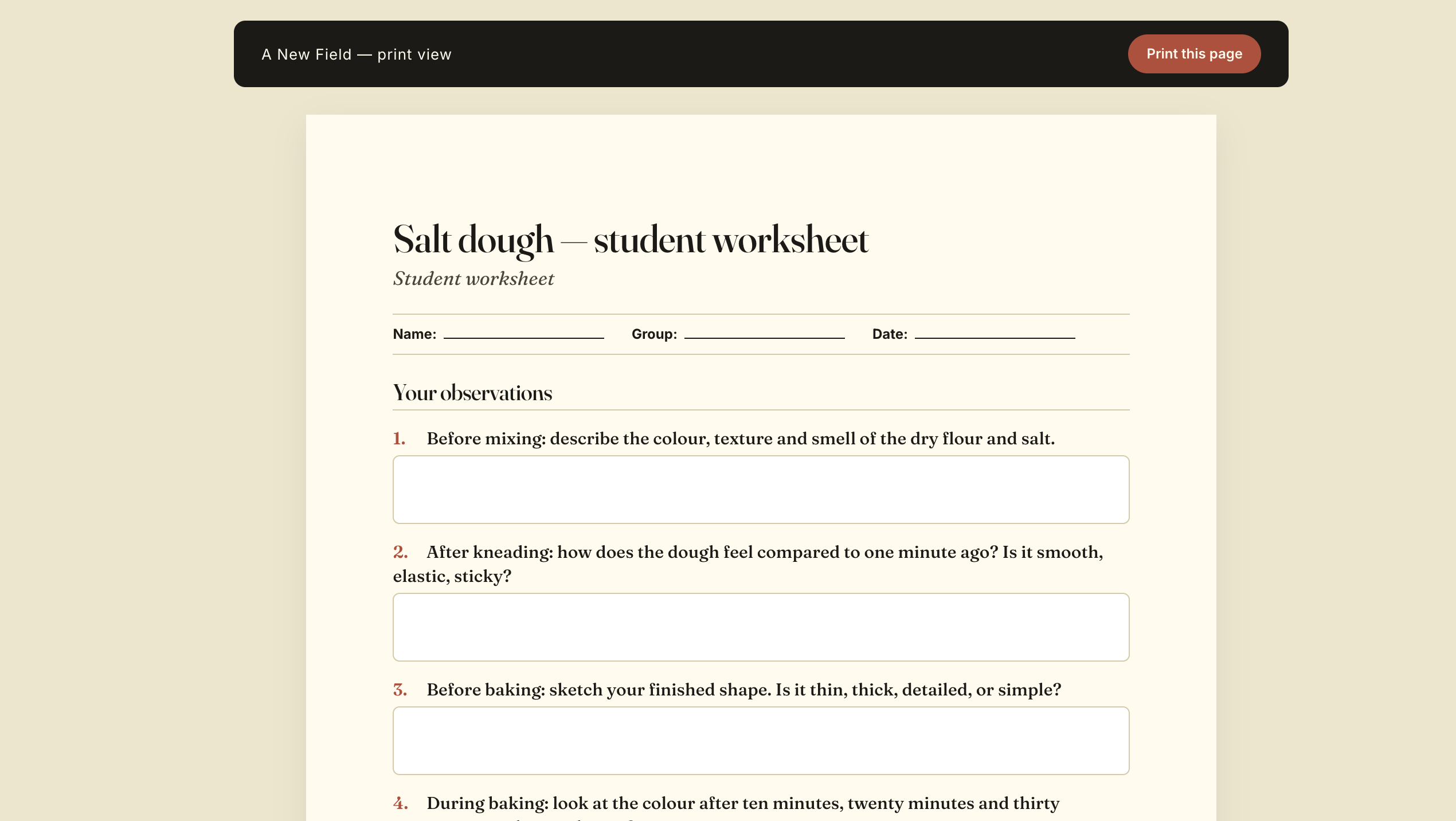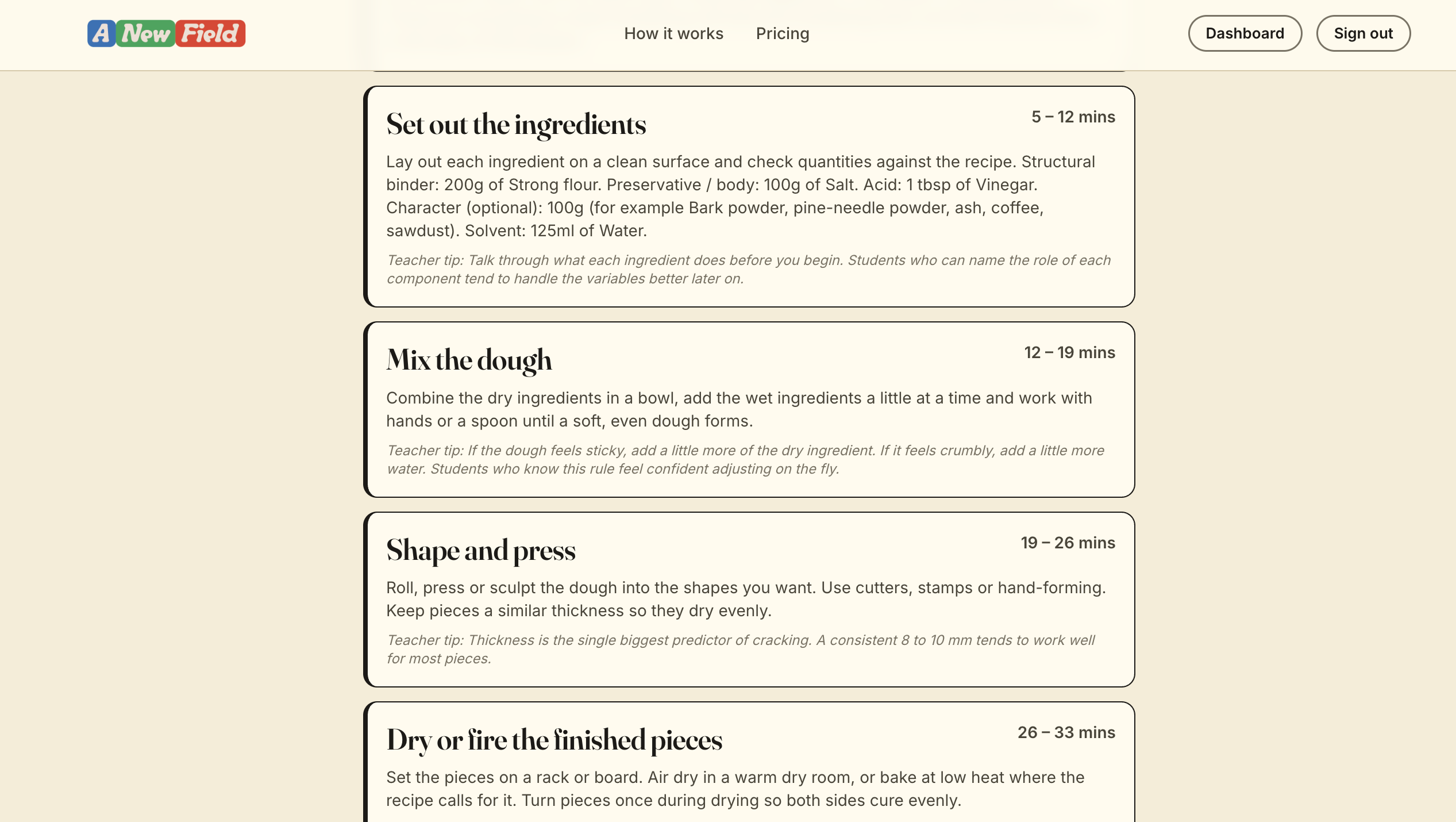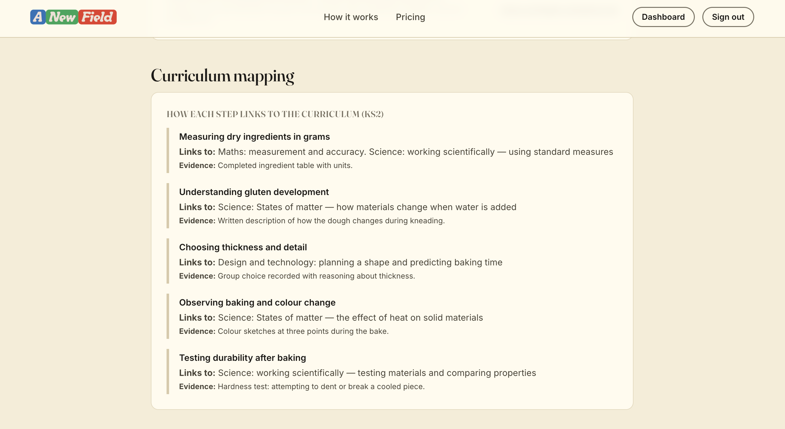 Dig deeper, recover from a messy stage, or respond to any question a student throws at you using our AI-enabled chat function. It is briefed on the recipe, your curriculum anchor and the stage you are in, so the help you get tends to land in the moment rather than after the bell.